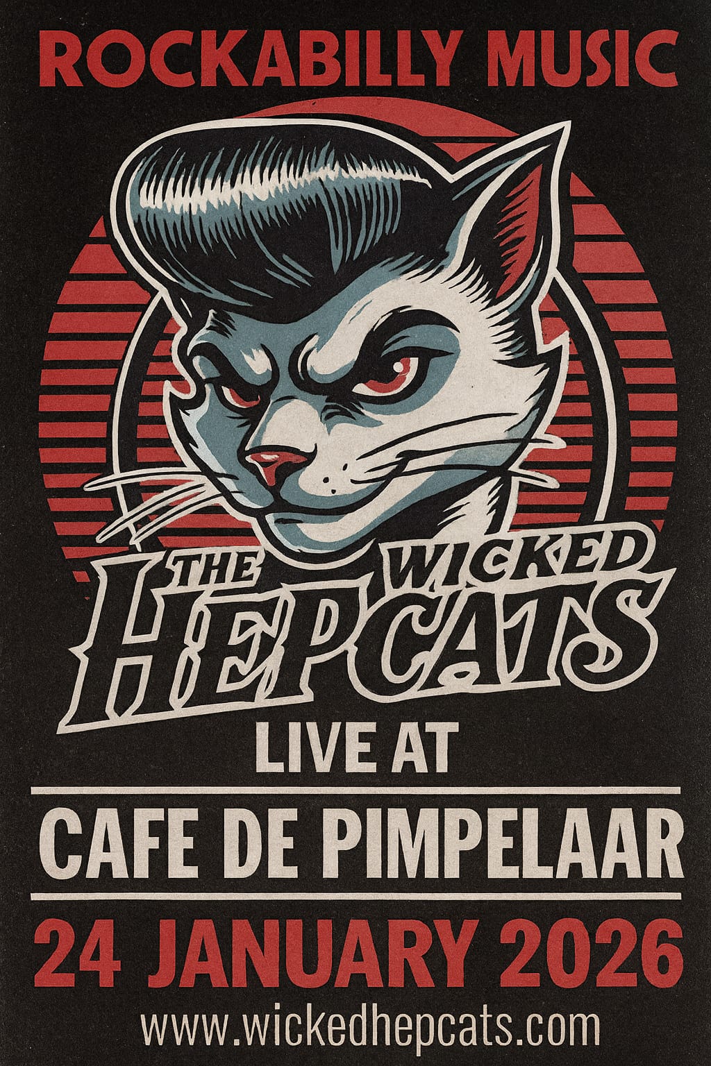 The Wicked Hepcats nemen je mee naar de jaren ’50 met hun vurige Rockabilly-sound. Onze optredens zijn geïnspireerd en energiek, en we zetten ons in voor authentieke muzikale ervaringen die je doen dansen.